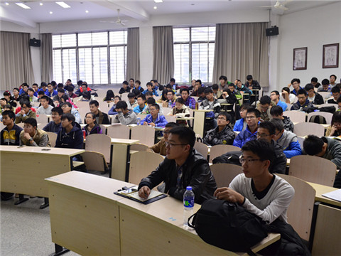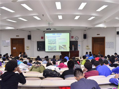 讲座开始,梁勇老师向同学们隆重介绍了王正汹教授。在掌声与赞叹中,王正汹教授走向讲台,开启讲座。该讲座由王教授的科研经历和国内的科研大环境两方面构成。首先,王教授详细的讲述了他从进入大学以来的科研经历和成果,并向大家分享了自己的学习经验和心得。之后,王教授对国内的科研大环境作了简要而深刻分析。他指出世界各国对能源的需求与日俱增,并简述当下能源争夺的危机。王教授提出,能够解决能源危机的根本途径就在于如何利用核聚变产生能源,世界各国对此都非常重视,由中、日、韩、印、欧、俄和美共同承建的核聚变装置已投入数百亿欧元。在这样的形式下可见科研途中充满着机遇和挑战。他还讲到,当今青年学生的科研方向要以国家重大需求为向导,中国科技领域急需科研人才。因此,期待年轻的物理人能够把握机遇,用知识武装自己,用创新修饰自己,为我国的科研做贡献。