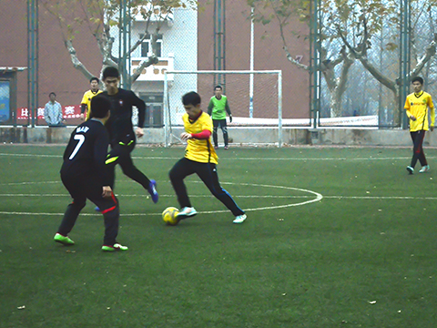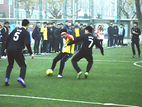 11月21日下午,校五人制足球赛小组赛出线之战,物理与光电学院对阵数学学院的比赛在福佳足球场开战。经过近一个小时的比赛之后,双方2:2握手言和,最终数学学院出线。
