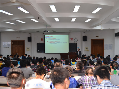 10月8日下午,物理与光电工程学院“院长第一课”讲座于综一158教室如期举行。出席本次讲座的嘉宾有物理与光电工程学院院长赵明山教授、党委副书记兼副院长杨木老师及2014级队辅导员梁勇老师。赵明山教授亲切讲话,提纲挈领,为大一新生上了精彩的一课,并明确指出:21世纪物理仍是世界领军学科,物理专业发展前景十分广阔。