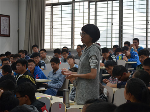 在最后的提问环节,赵明山教授亲切地对同学们的问题一一作出了回答。针对“物理专业就业前景不好”这一质疑,院长本人对此做出了相应回应,他明确指出了这一看法的局限性:首先作为一所综合性大学,它的培养目的并不是为了供给对口专业的需求,而是培养情商、智商得到全面提升、并具有更高综合素质与能力的高水平人才;其次,就总体来讲,我院毕业生的就业率也是位居全校前列的,且由于物理作为基础学科,涵盖了社会生活中的方方面面,就业范围十分广泛,很多物理学子不仅具有极强的逻辑思维能力及动手操作能力,更有较高的工作能力以及扎实的专业基础,也因此受到了各企业的青睐,成为管理阶层的人员;另外,我院历年来选择深造的情况也相当乐观,条件也十分优越,其发展前景也是十分广阔。此外,院长还强调,读大学绝不仅仅是为了毕业,宝贵的大学时光不能荒废,而是要紧紧抓住用来夯实学业基础、发展兴趣爱好、提升综合能力,成为高水平、高素质、全面发展的综合性人才,建议大家在广泛打好学科基础的同时发现自己的专长和兴趣,确立人生目标,并鼓励同学们抓住机会,走进实验室了解前沿研究,与指导老师多多沟通交流。